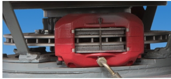 驅動裝置上安裝了液壓制動(ABS)裝置,其采用超越離合器結構,可使整個液壓系統(tǒng)在正常工作運轉時處于不工作狀態(tài),從而減少液壓系統(tǒng)機械磨損,具有使用壽命長、安全可靠性高、制動性能強等優(yōu)點(如圖 1-3 所示)。